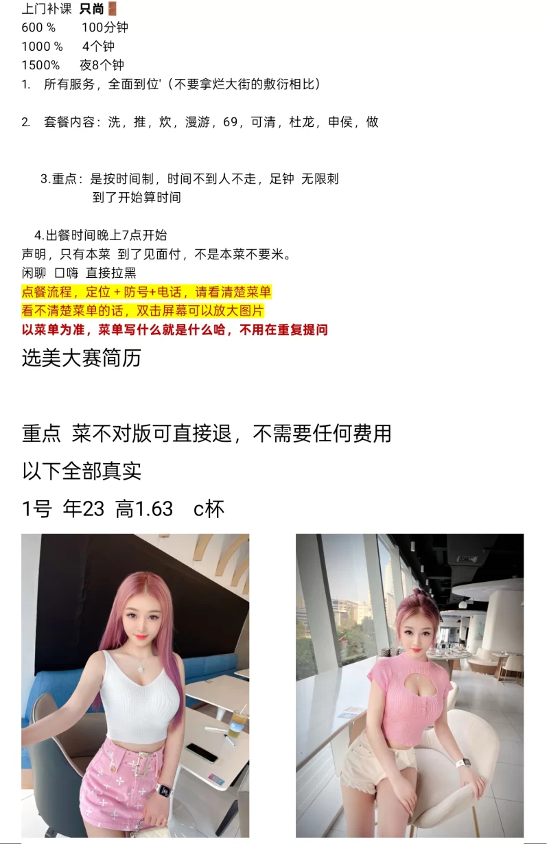 服务项目: 洗,推,炊,漫游,69,可清,杜龙,申侯,做
